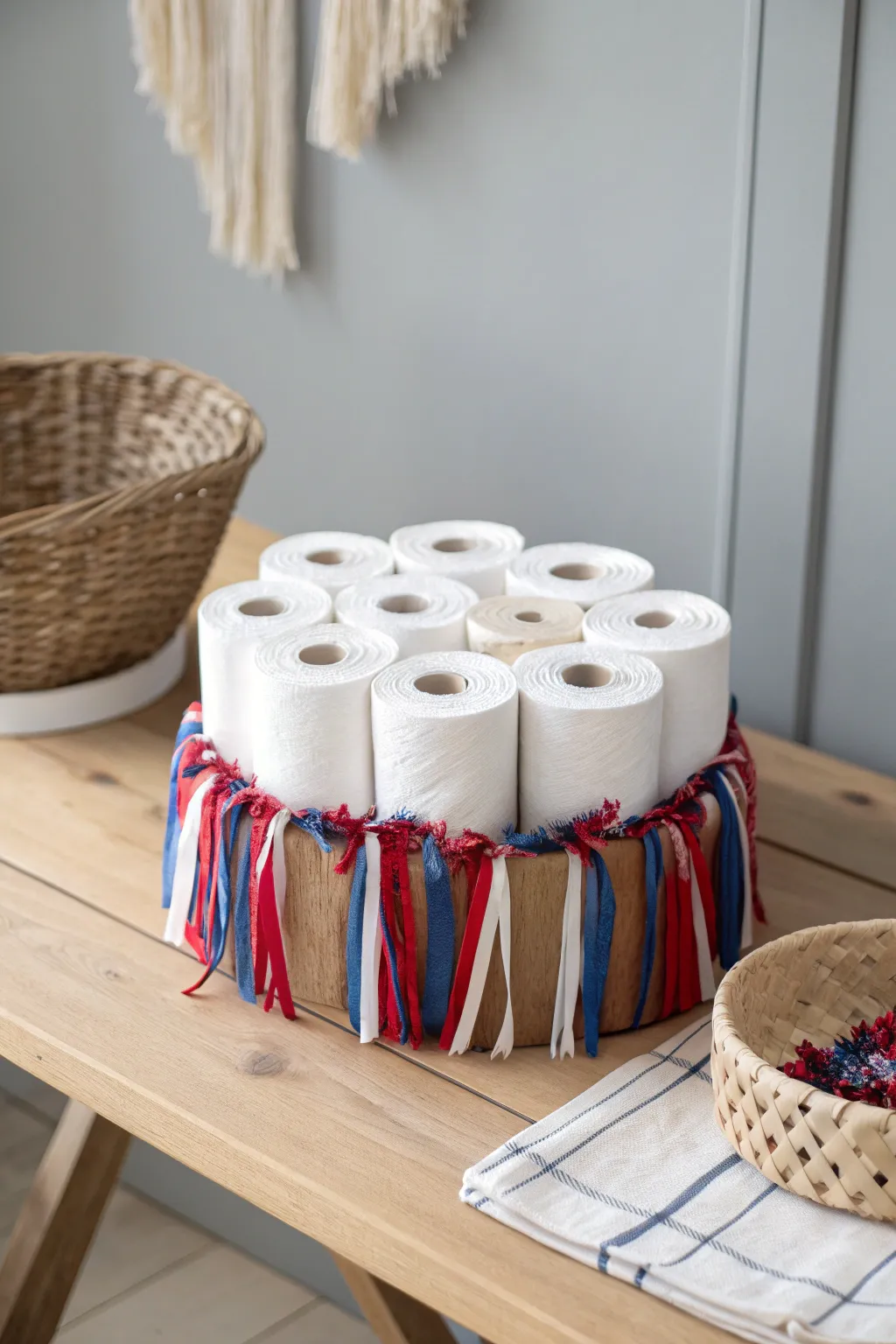 Use toilet paper rolls to create a fireworks centerpiece with red, white, and blue streamers. It’s a crafty project that’s fun and simple, perfect for a pre-party activity!