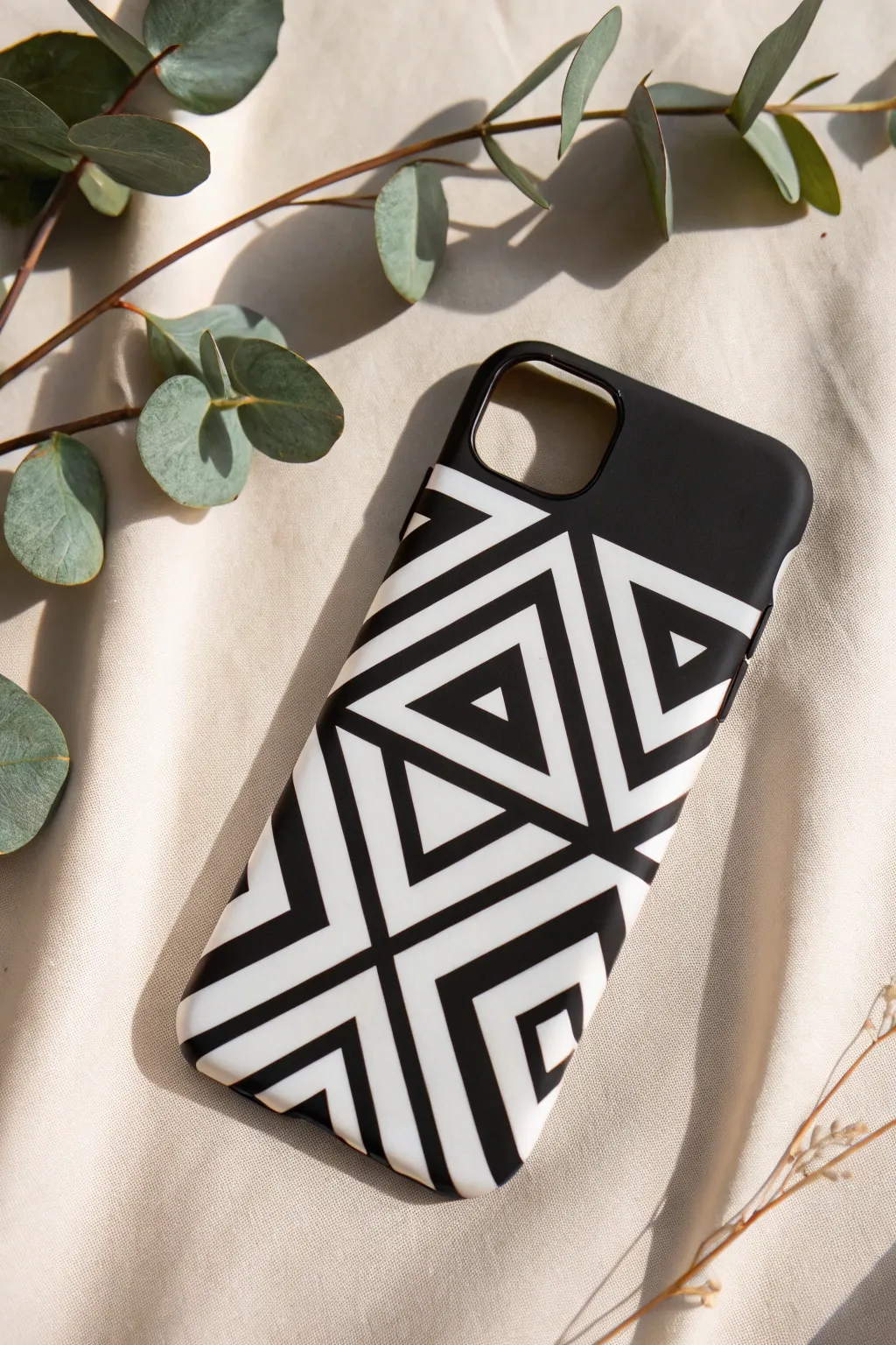 • Black and White Geometric Phone Case: Elevate your style with a sleek black and white geometric design. Perfect for a minimalist look.
