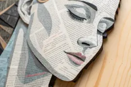 Create depth with a layered collage of paper and fabric. It’s an artistic way to tell a story or convey a theme.