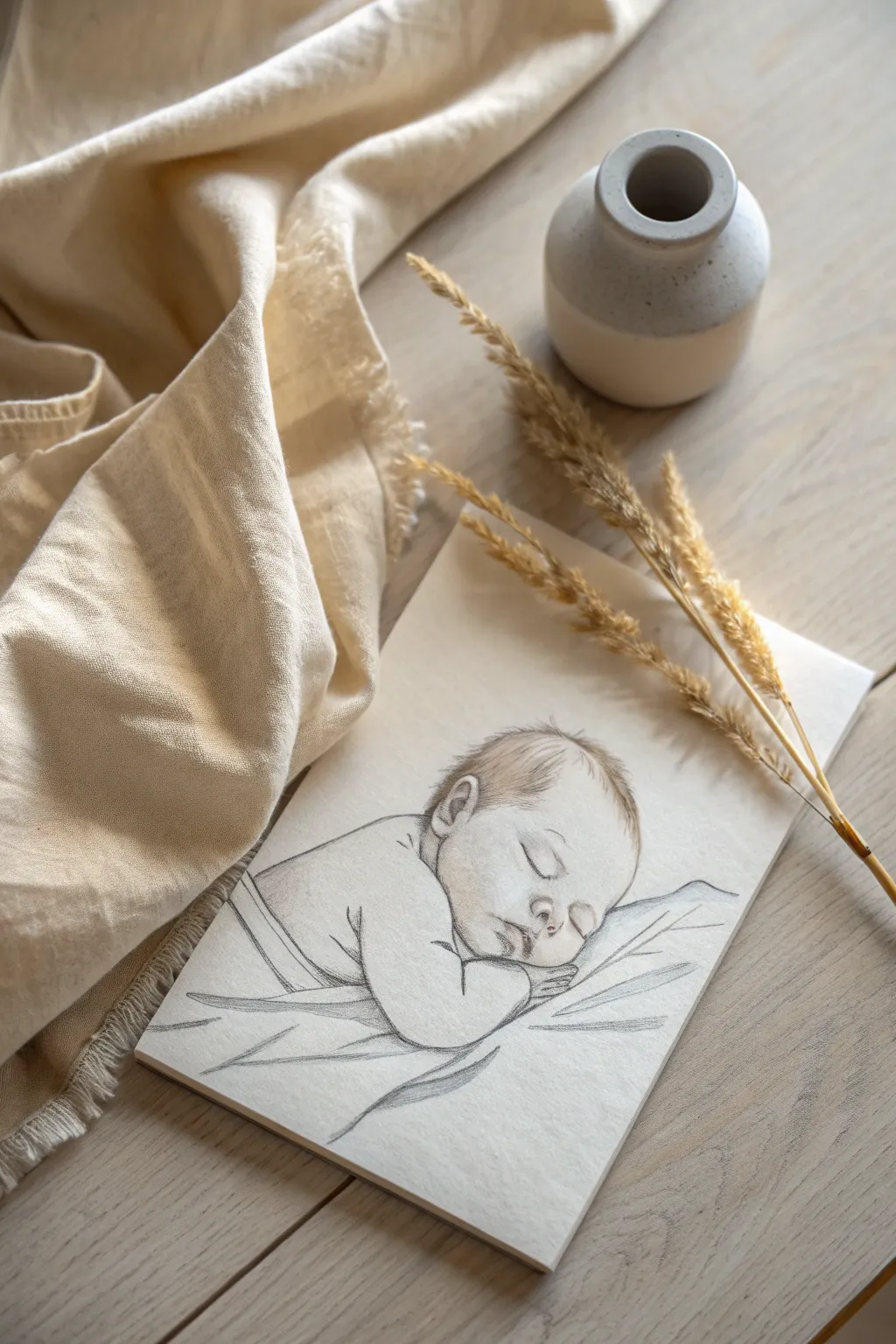 There’s something magical about a sleeping baby, and capturing that peacefulness on paper can be so rewarding. I always aim to convey the serenity of those tiny closed eyes.