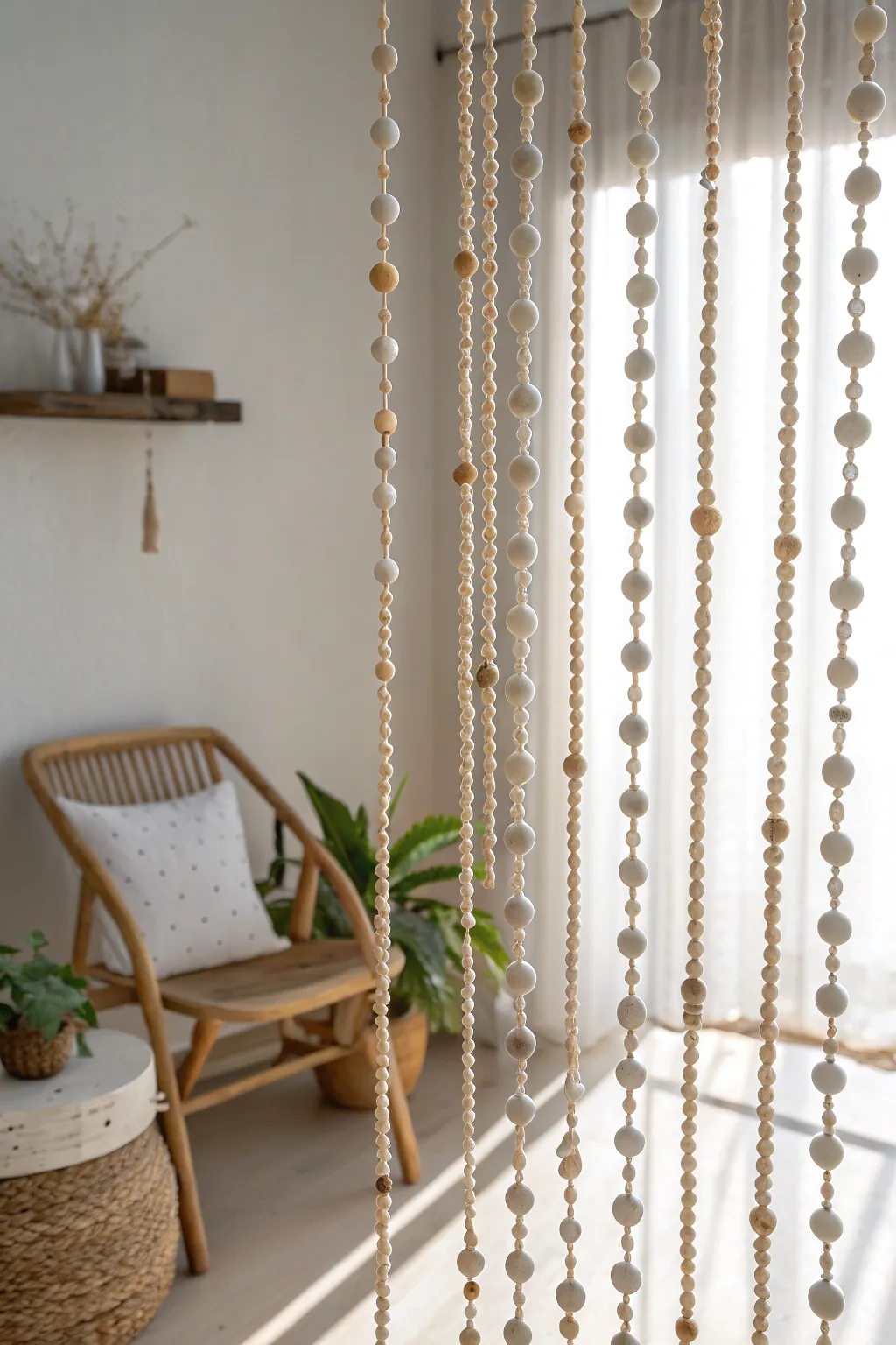 Add a bohemian touch to your space with DIY beaded curtains. They’re a delightful way to separate rooms or dress up a plain window.