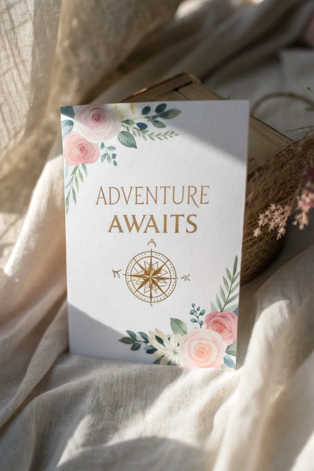 Design a card that speaks to future travels or adventures. It’s perfect for the wanderlust at heart and adds an exciting twist.
