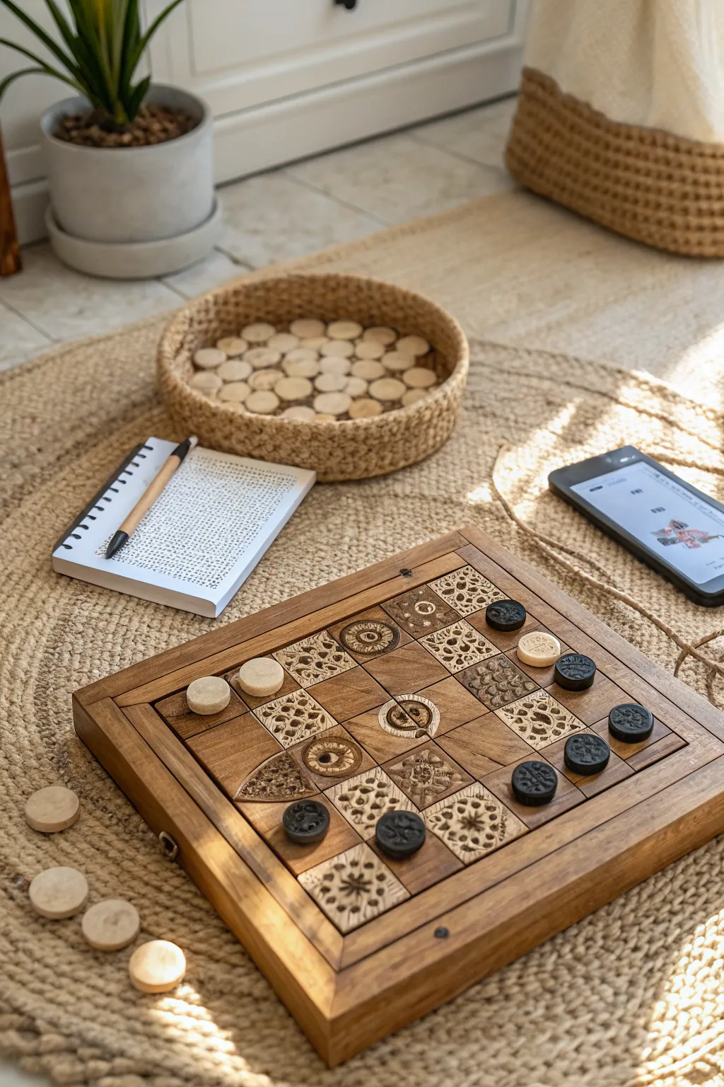 Create a magnetic board for a satisfying click with every move. I used a metal sheet and small magnets, and it’s been a magnetic attraction for my game nights.
