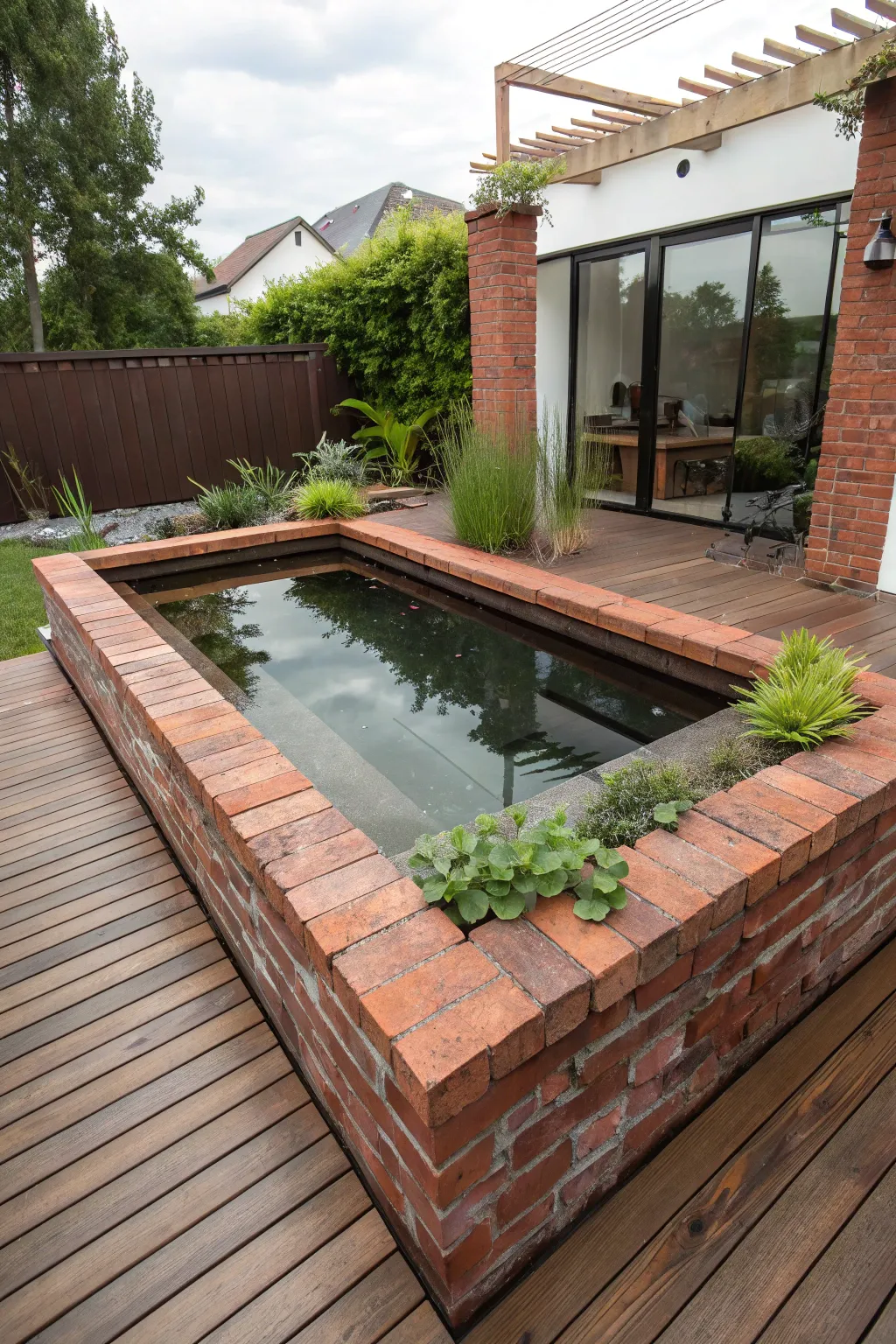 For those who prefer clean lines, a rectangular brick pond is a stylish choice. It offers a modern look that’s perfect for contemporary gardens.