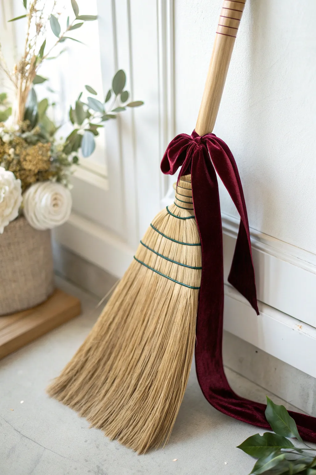 - Elegant Velvet Ribbon: Enhance your broom with a touch of luxury by adding this elegant velvet ribbon today.