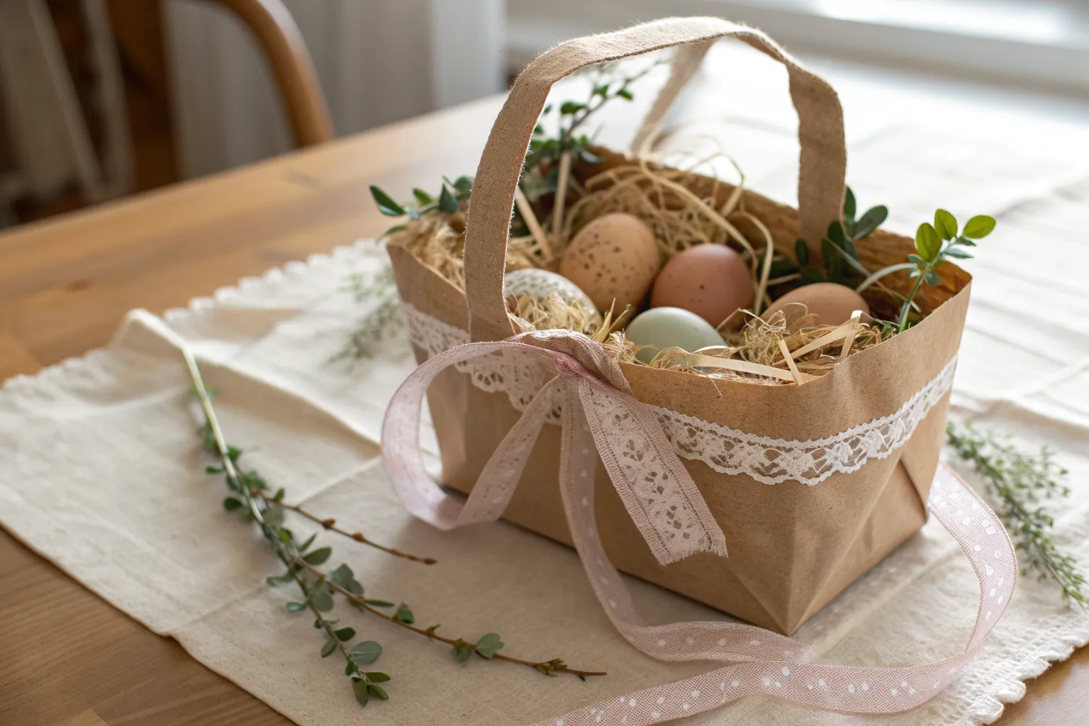 Add a bit of whimsy by attaching paper bunny ears and whiskers to your bag. This playful addition always brings a smile and makes each basket feel like a pet bunny waiting to hop into your Easter festivities.