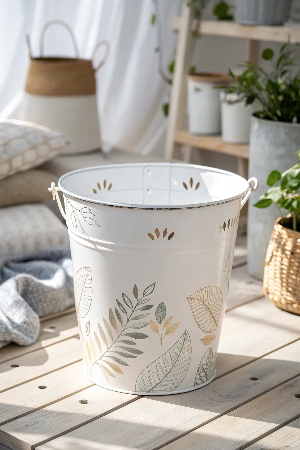 Add a modern twist with geometric patterns using stencils. These patterns gave my buckets a stylish look that blends perfectly with my minimalist decor.