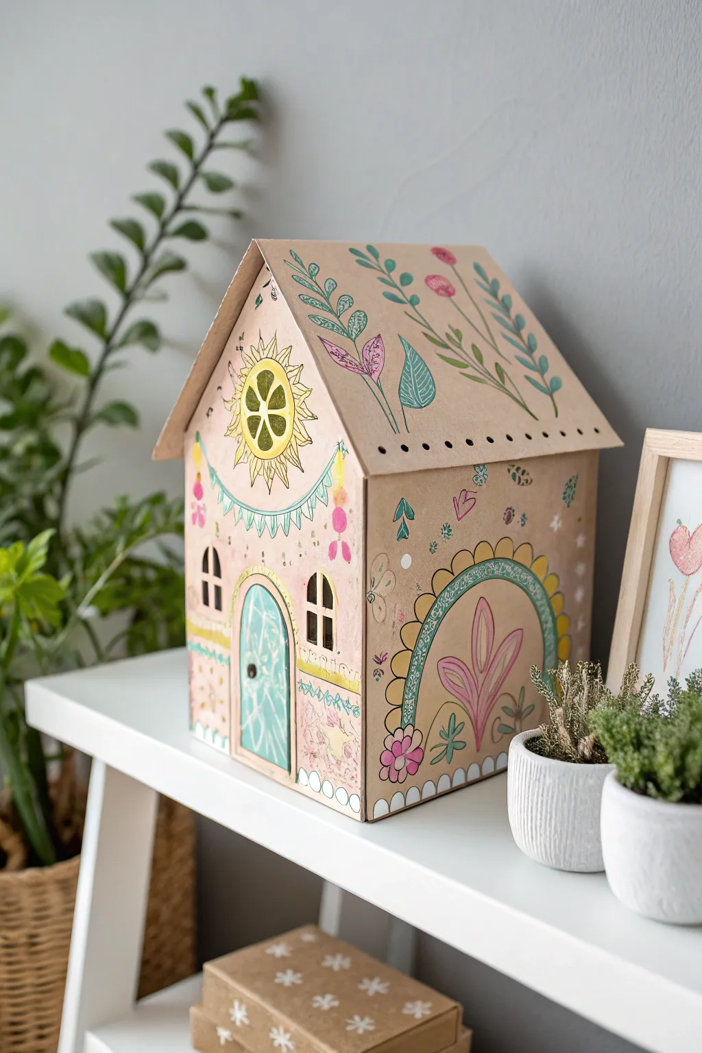 Unleash creativity with this charming DIY cardboard dollhouse, a perfect blend of Scandinavian minimalism and boho flair.