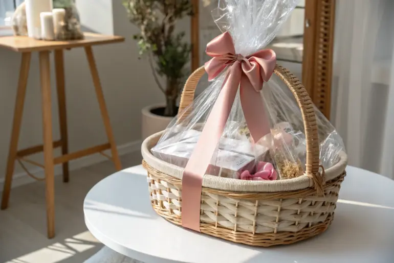 Wrapping a gift basket is like crafting a little world of delights for your friends and loved ones. Let’s dive into some creative ideas to make your gift baskets memorable and beautiful! Clear Cellophane Elegance Elevate your gift-giving with clear cellophane elegance. Perfectly minimalist, beautifully Boho. Wrap your basket in clear cellophane to showcase all the goodies inside. It’s like putting your gift on display and adds a touch of elegance. Possibly handy products: Clear…
