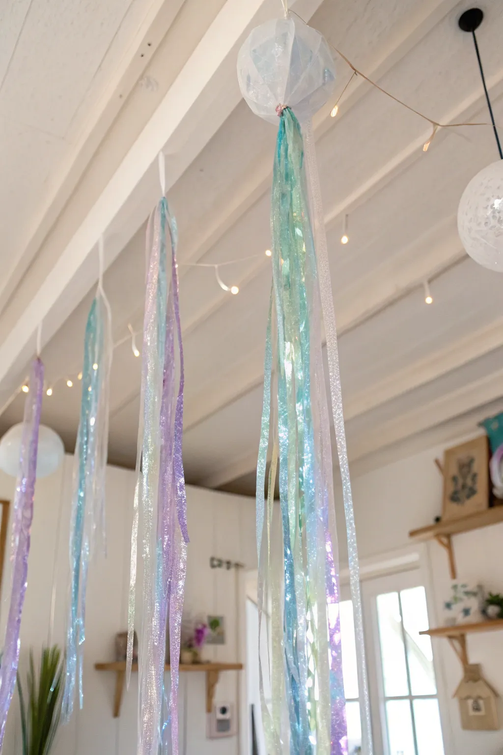 Hang strands of cellophane from the ceiling to mimic a starry night or a colorful aurora. This is one of my favorite ways to add a whimsical touch to my studio.