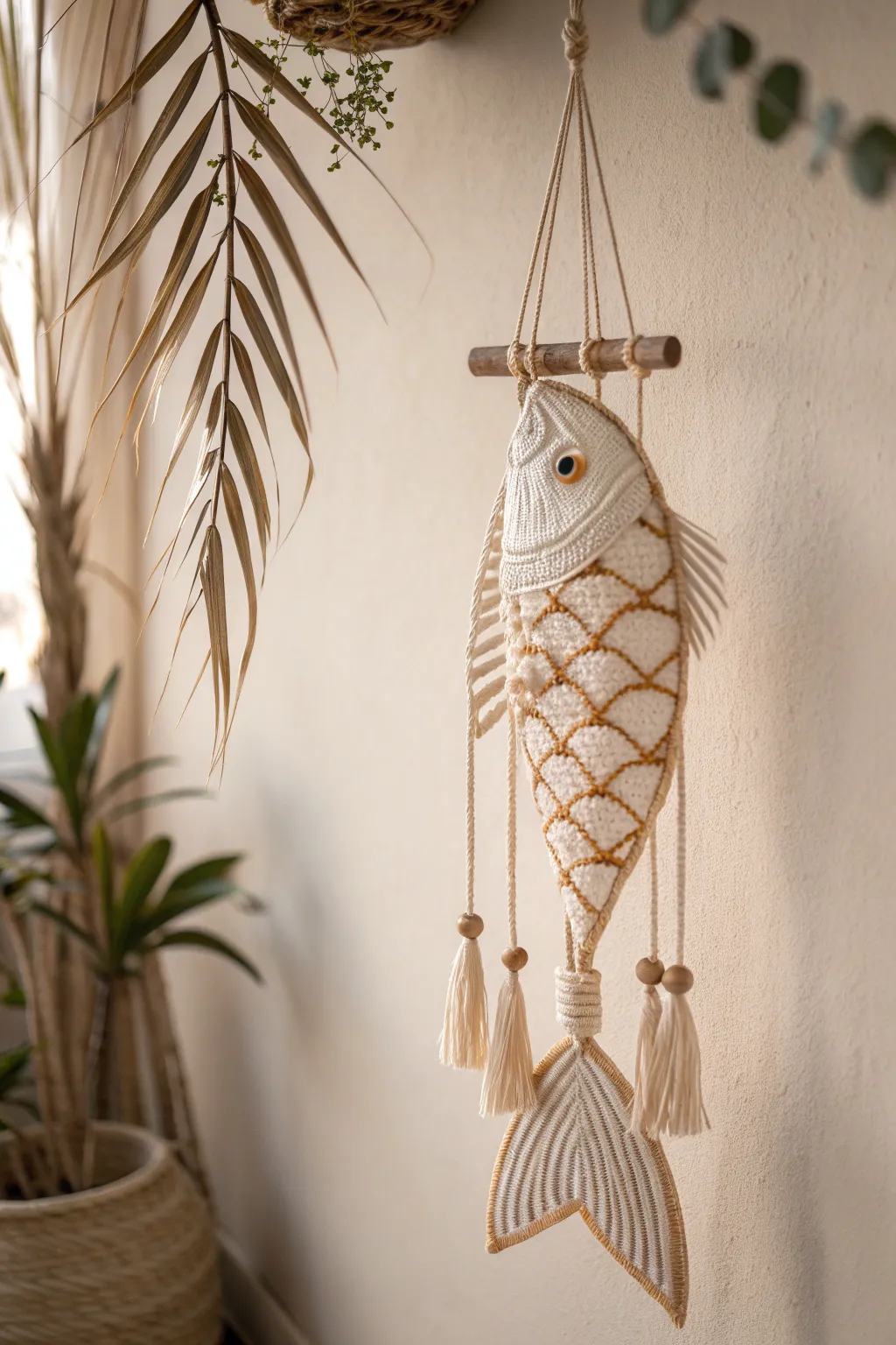 Embrace abundance and elegance with this handcrafted fortune fish mobile, a perfect blend of Scandinavian minimalism and boho charm.