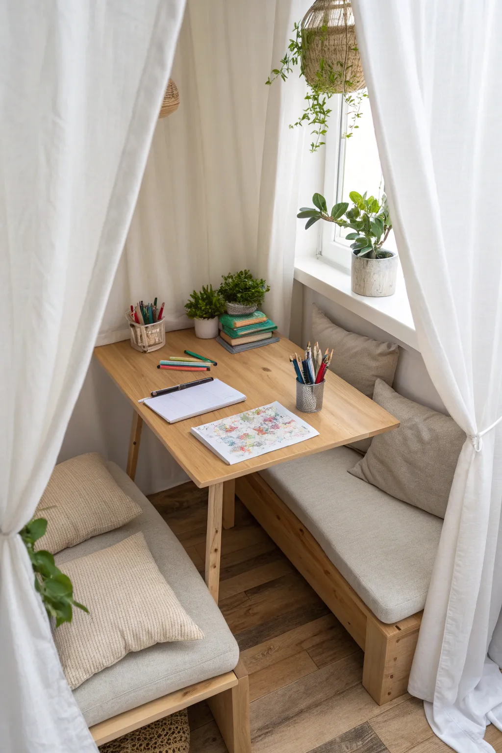 Include a small table for arts and crafts, fostering endless creativity. My niece loves spending hours drawing and crafting in her own little creative corner.