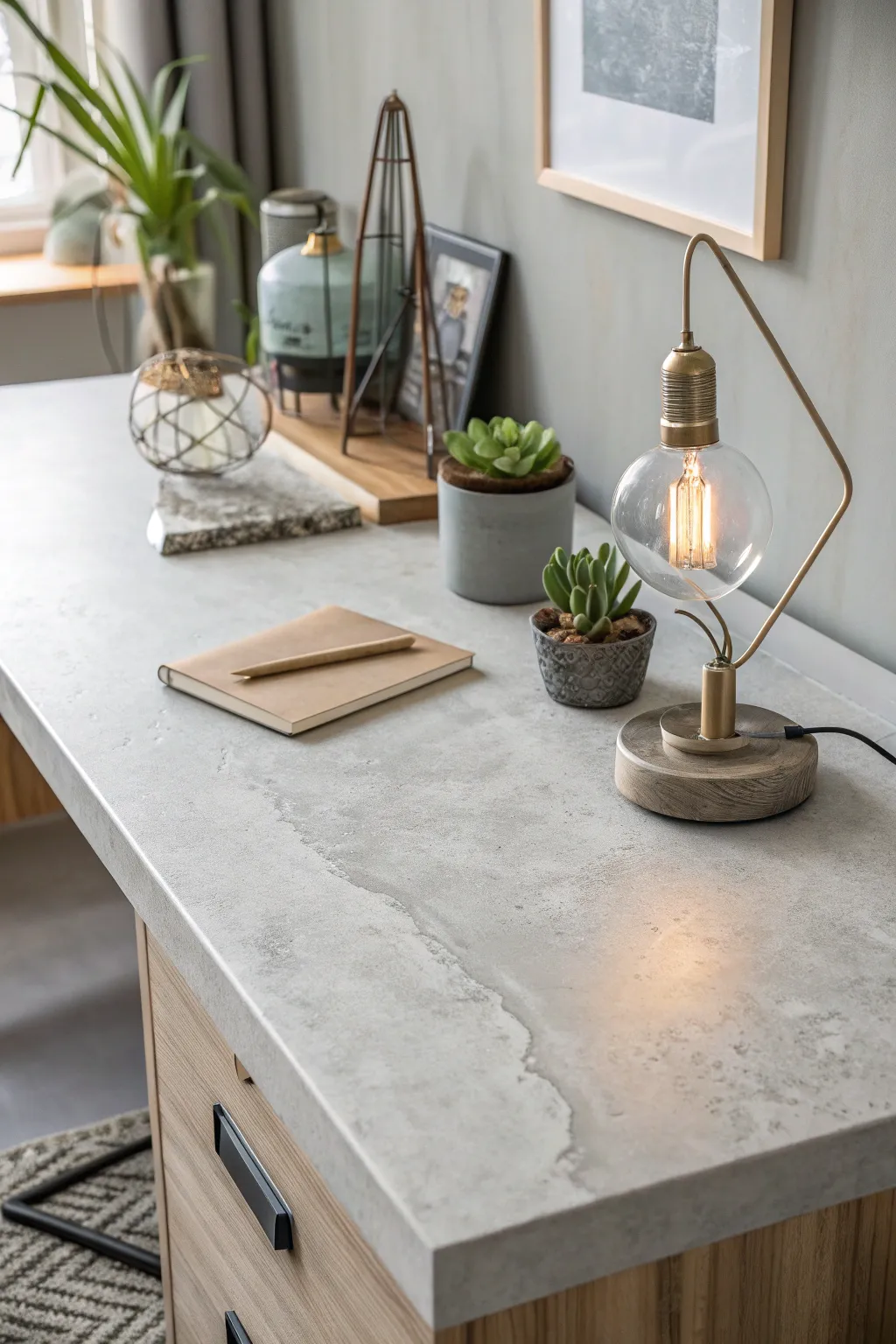 - Concrete Contact Paper: Transform your desk with concrete-style contact paper for an instant industrial look.