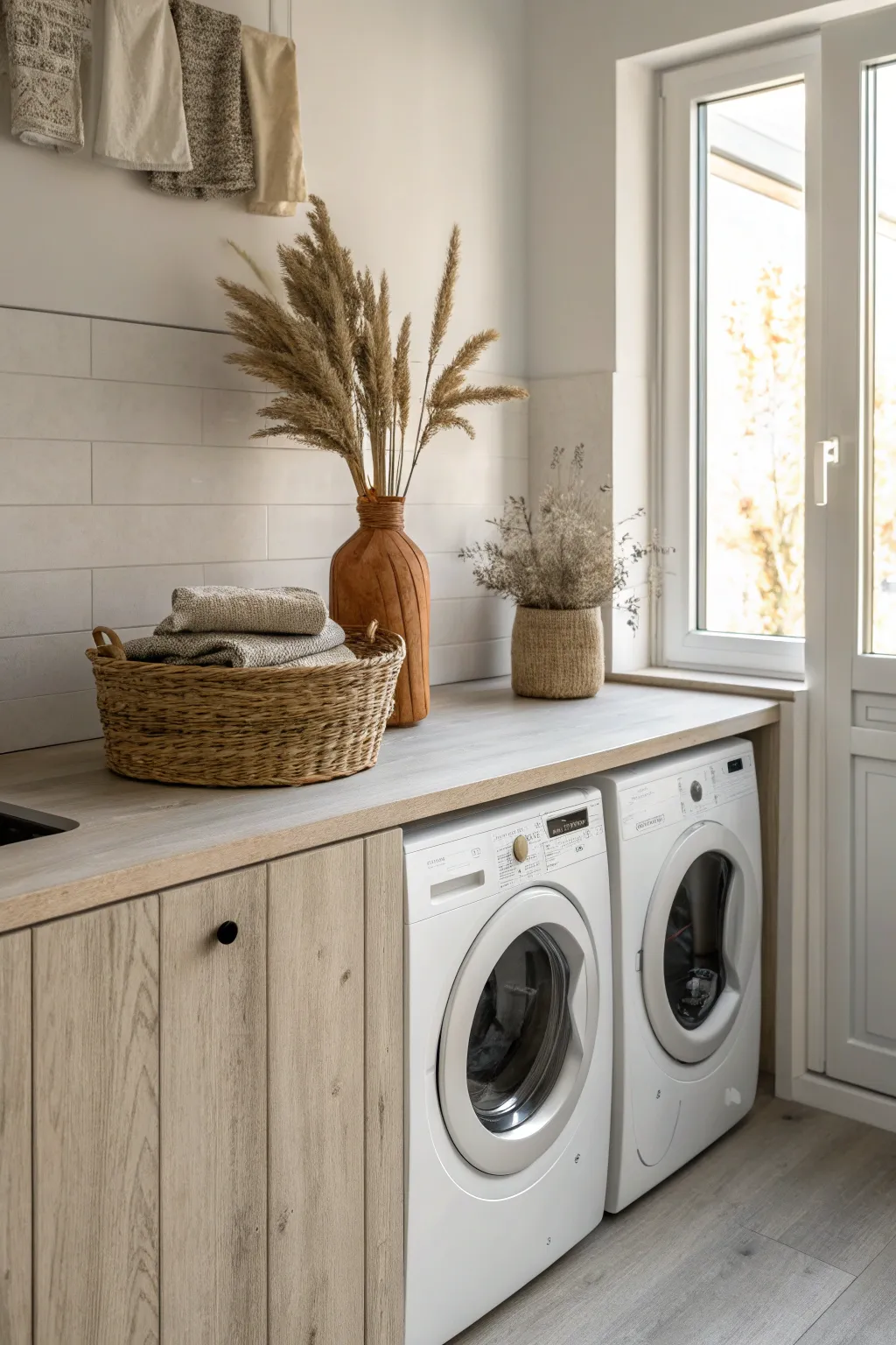 - Wooden Laundry Countertop: Enhance your laundry room with a sleek wooden countertop, perfect for a clean, modern look.