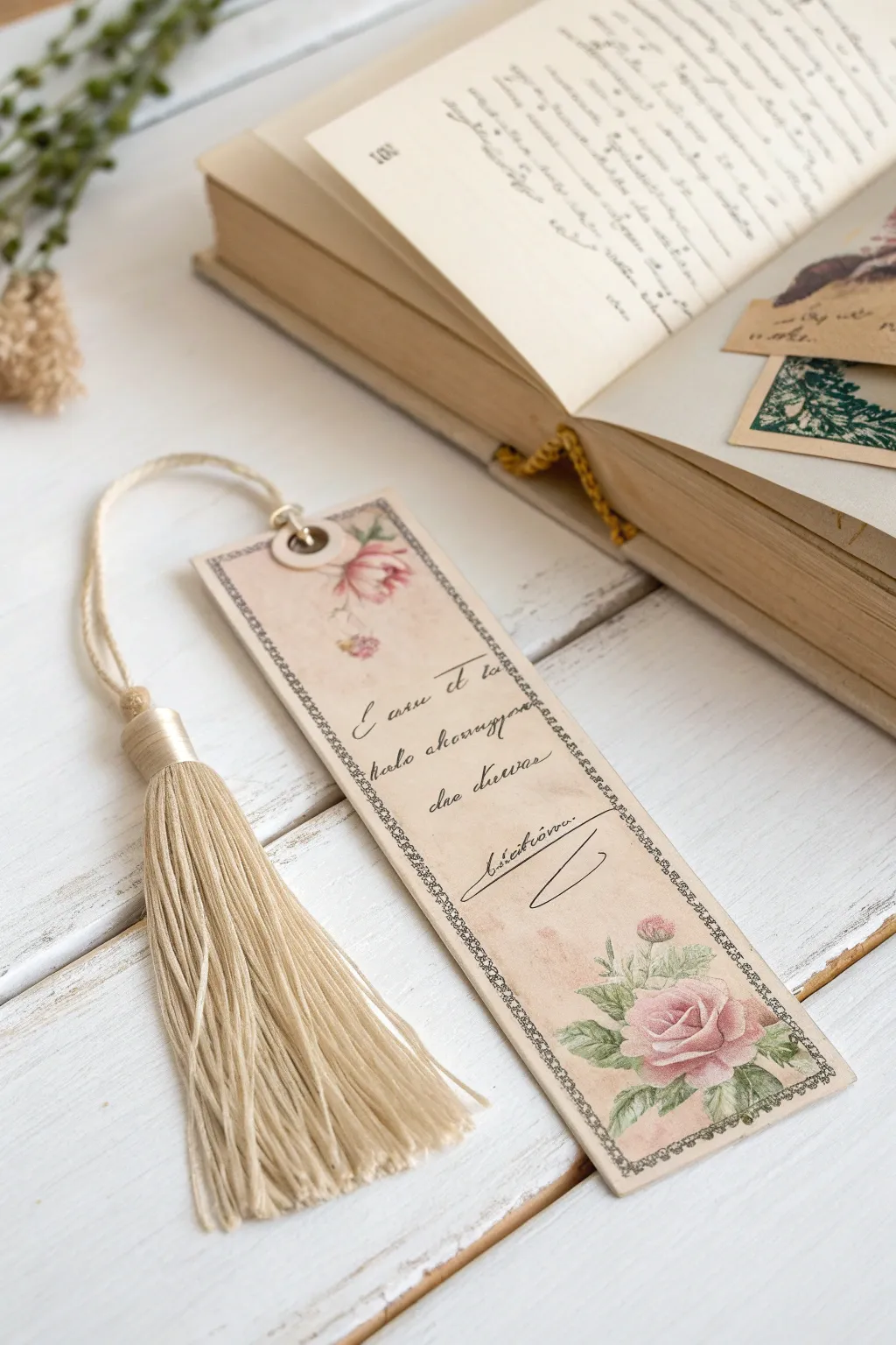 Transform old postcards into bookmarks by cutting them into strips and adding a tassel. They bring a nostalgic charm that whispers stories from the past.