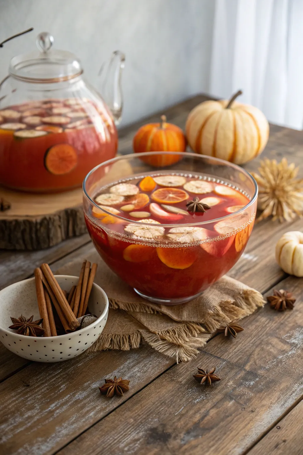 • Glass Punch Bowl Set: Elevate your presentation with a classic glass punch bowl, perfect for showcasing autumn punches.