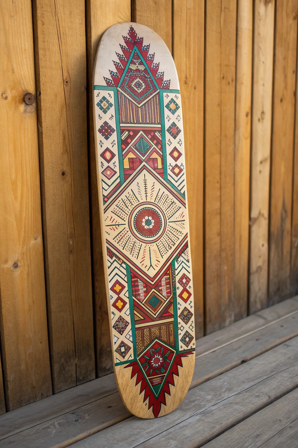 - Cultural Patterned Skateboard Decks: Express your roots with unique skateboard decks showcasing beautiful cultural heritage patterns.