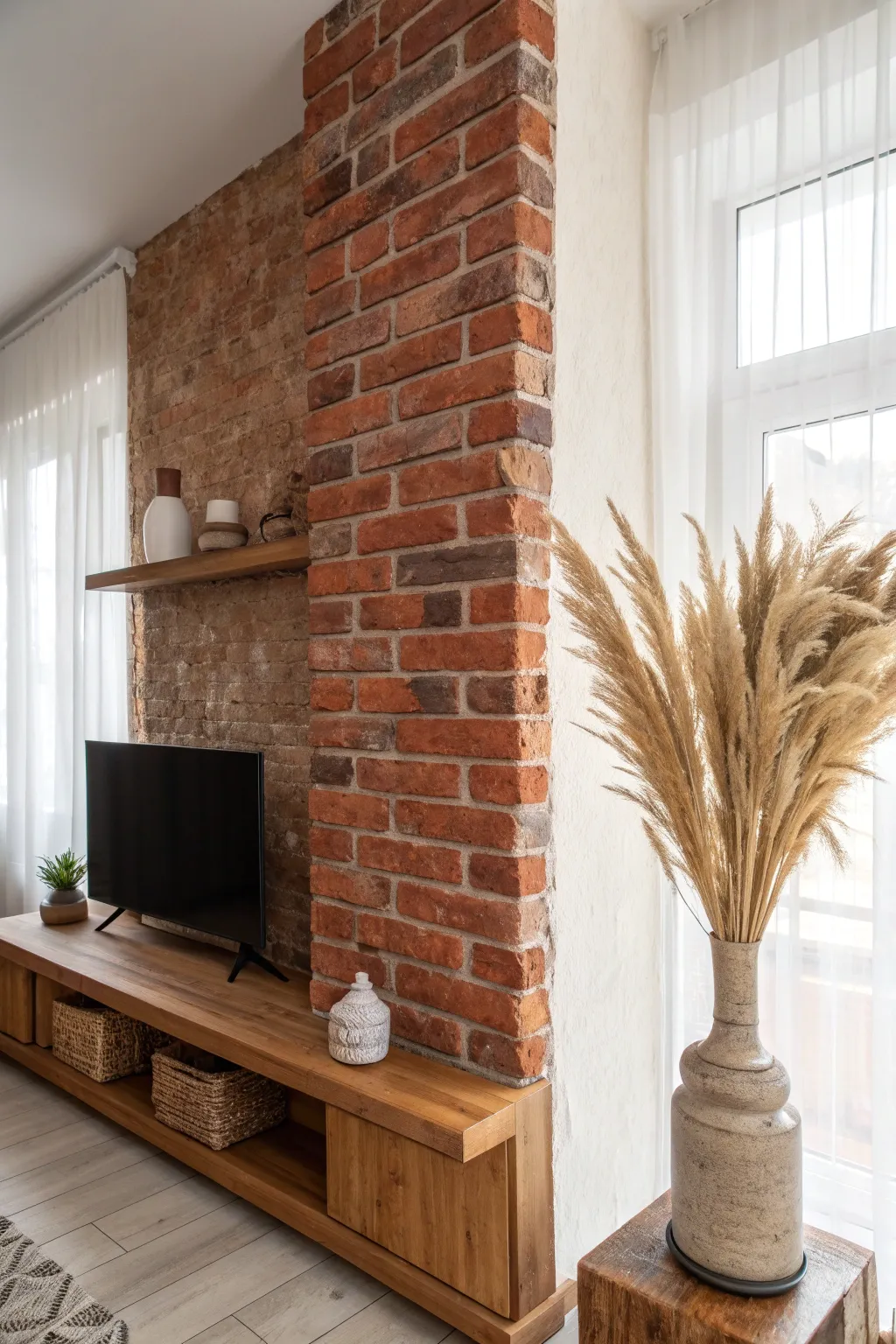 For an urban vibe, consider a brick accent wall. It’s a timeless choice that adds texture and a sense of history to your space.