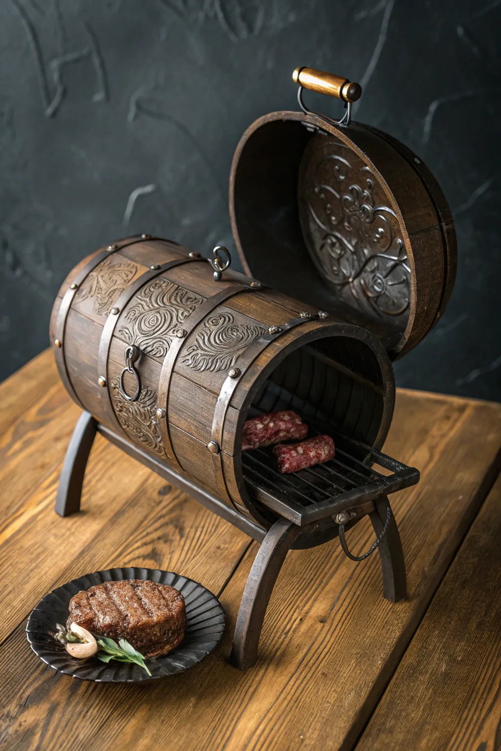 For smaller spaces, a miniature barrel grill works wonders. It’s compact, quirky, and perfect for a quick grill session.