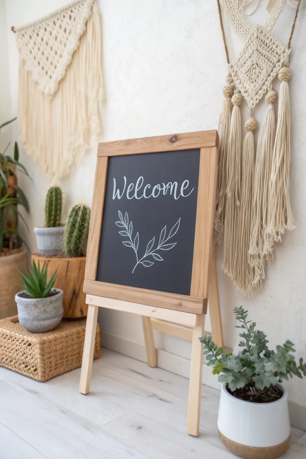 Create connections and creativity with a minimalist interactive chalkboard sign. Perfect for your next event!