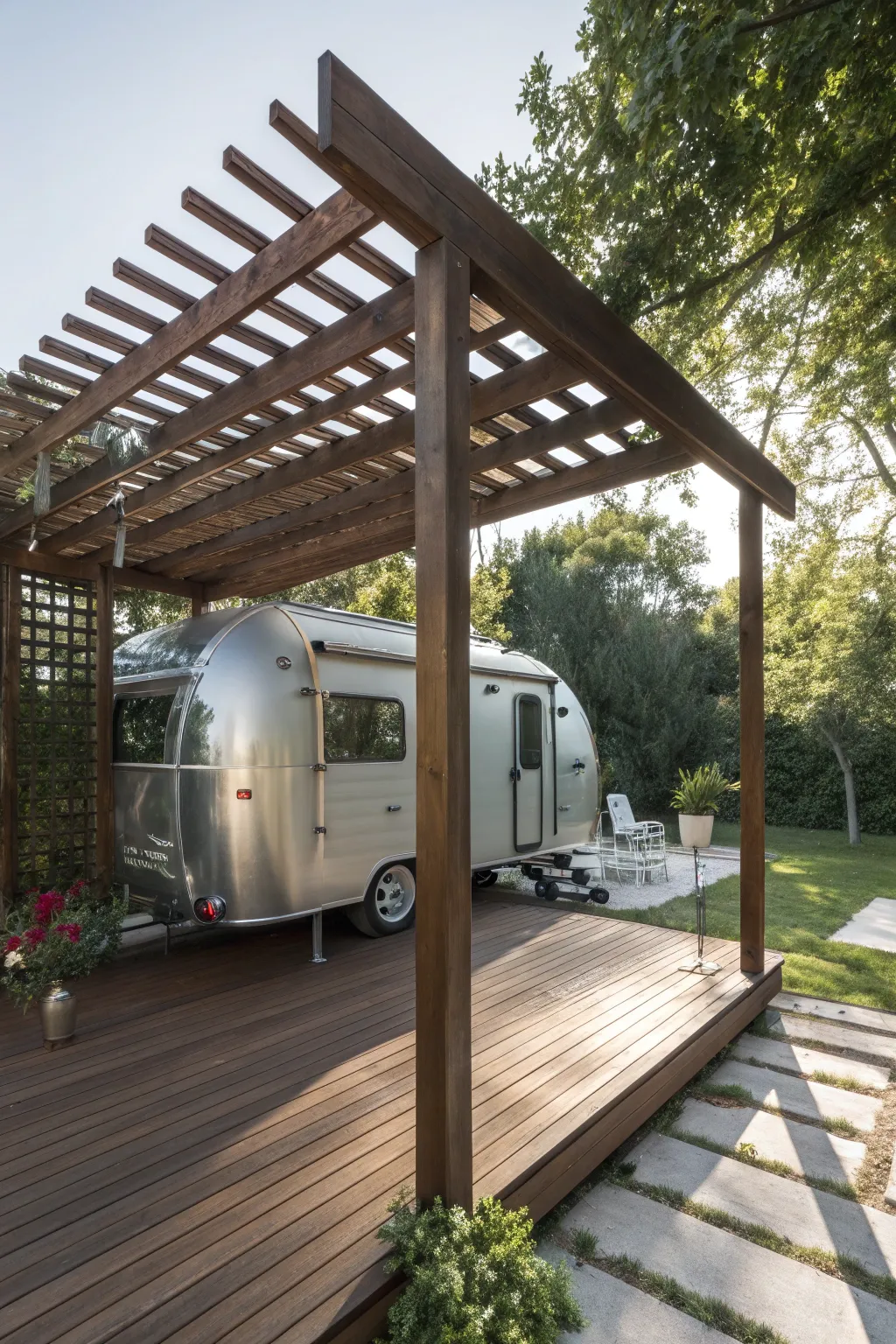 - Adjustable Pergola Shade Canopy: Add adjustable shade to your pergola, perfect for sunny days on your camper deck.