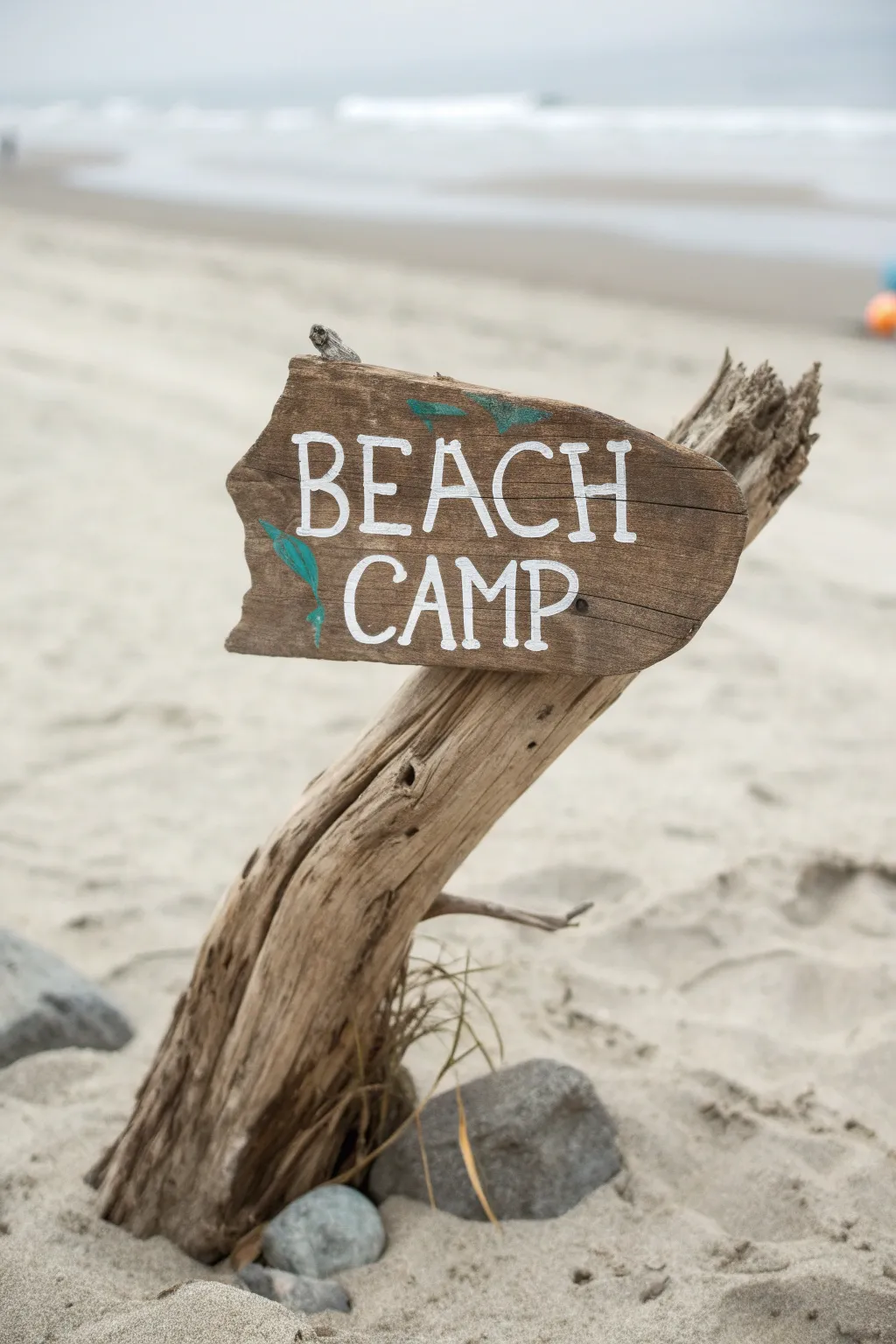 Craft a sign from driftwood for a beachy vibe. I love collecting pieces during walks along the shore, each uniquely shaped by the waves.