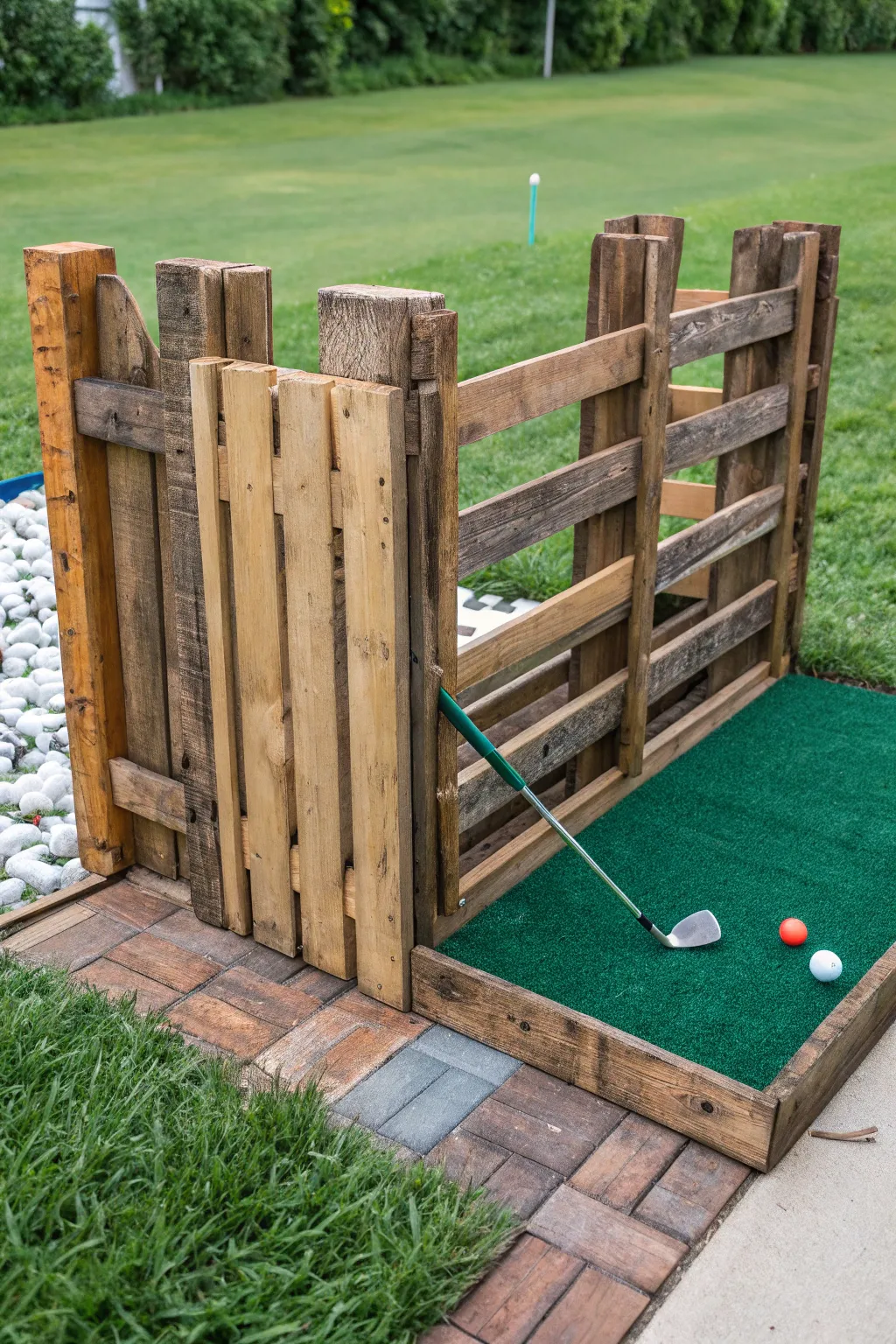 - Wooden Pallets: Create a rustic and eco-friendly chipping area using versatile recycled wooden pallets.
