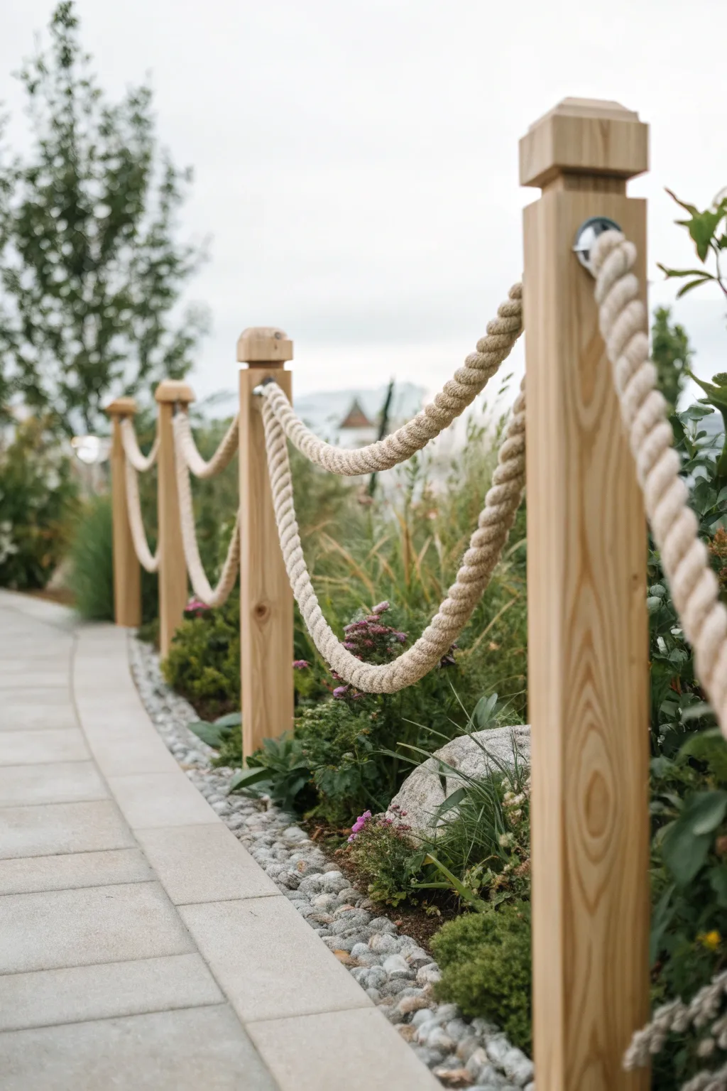 For a touch of whimsy, string thick rope between wooden posts. I tried this around a flower bed, and it gave the space a nautical feel that was both unique and charming.