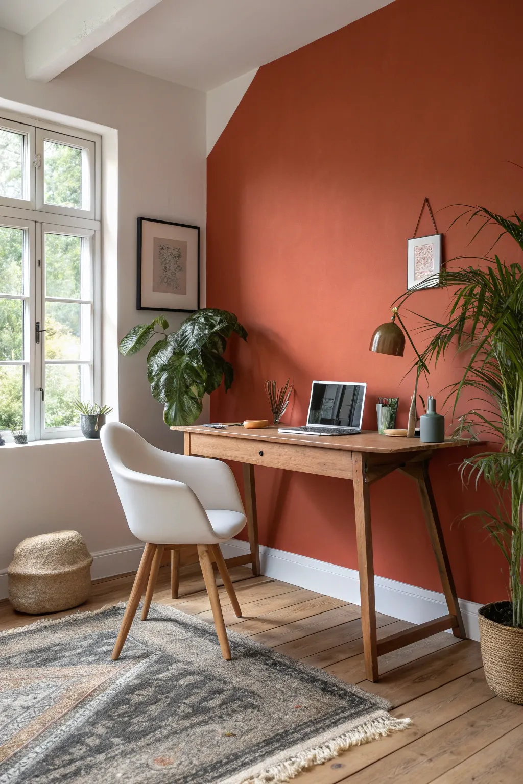 Transform your workspace with a bold accent wall that inspires creativity and elegance.