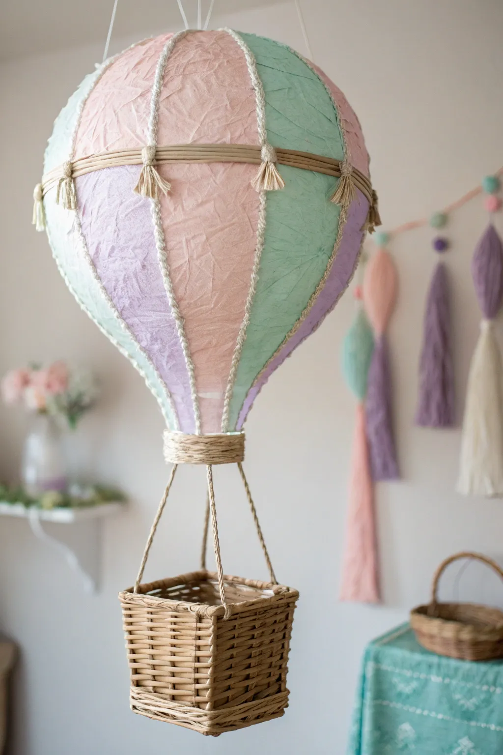 • Pastel Hot Air Balloon Hanging Decorations: Add dimension to your space using charming pastel hot air balloon hanging decorations.