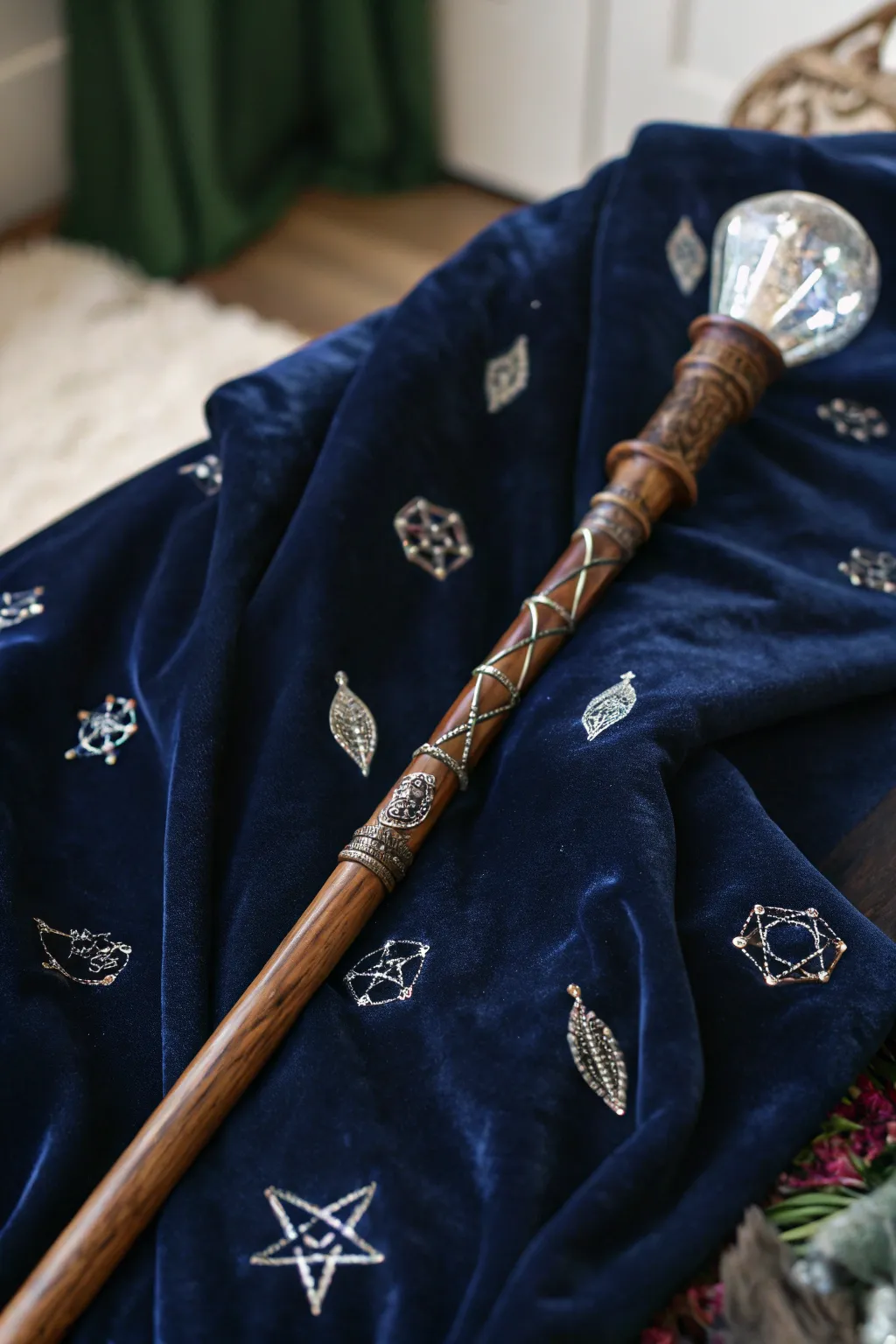 Transform into a mystical wizard with just a long robe and a homemade staff. Add a pointed hat and a few magical symbols drawn on with fabric paint for an enchanting look.