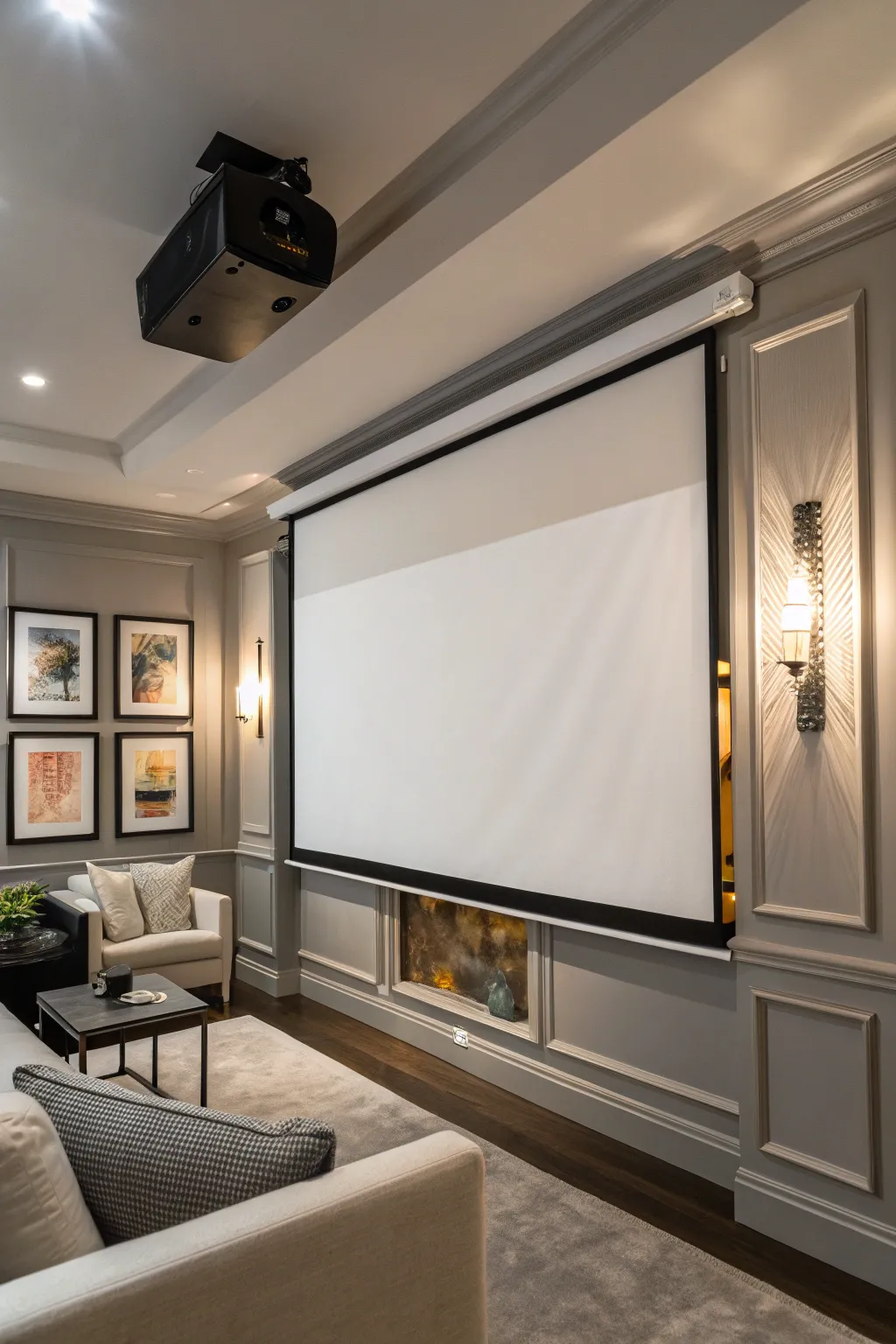 Elevate your home cinema with a convertible ceiling drop screen, combining functionality and style.