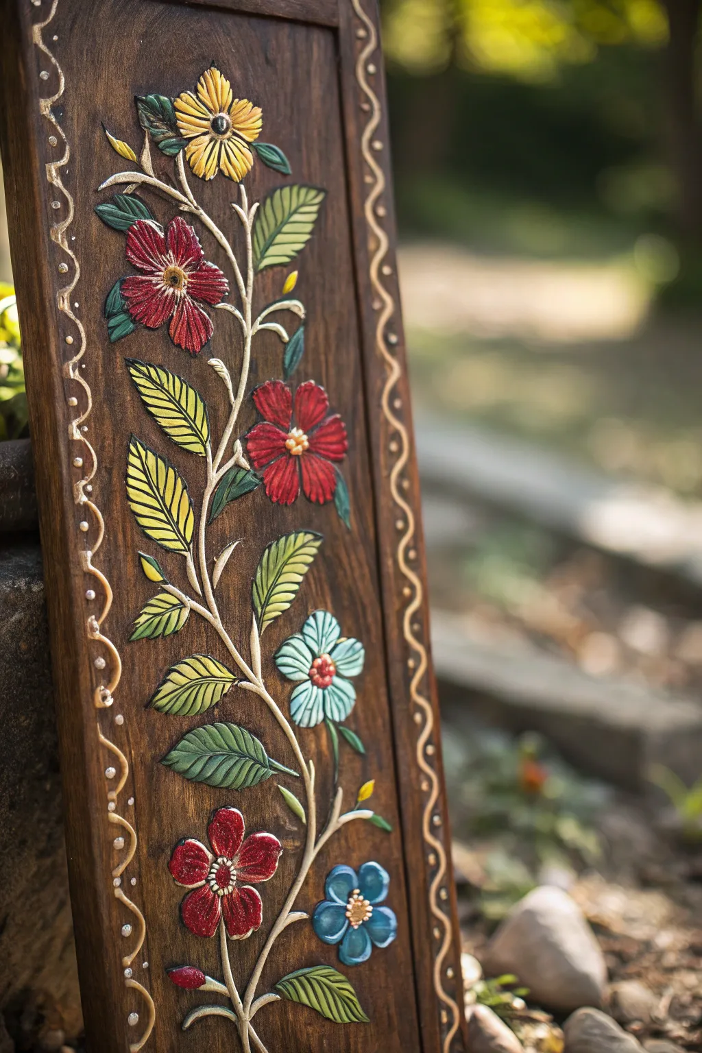 Use a small brush to paint delicate flowers on your wood plaque for a touch of nature indoors. This is a project where I get to unleash my inner artist and play with colors.