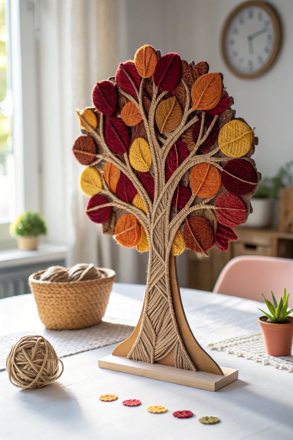 Embrace the beauty of fall with a simple yet stunning yarn-wrapped tree craft.