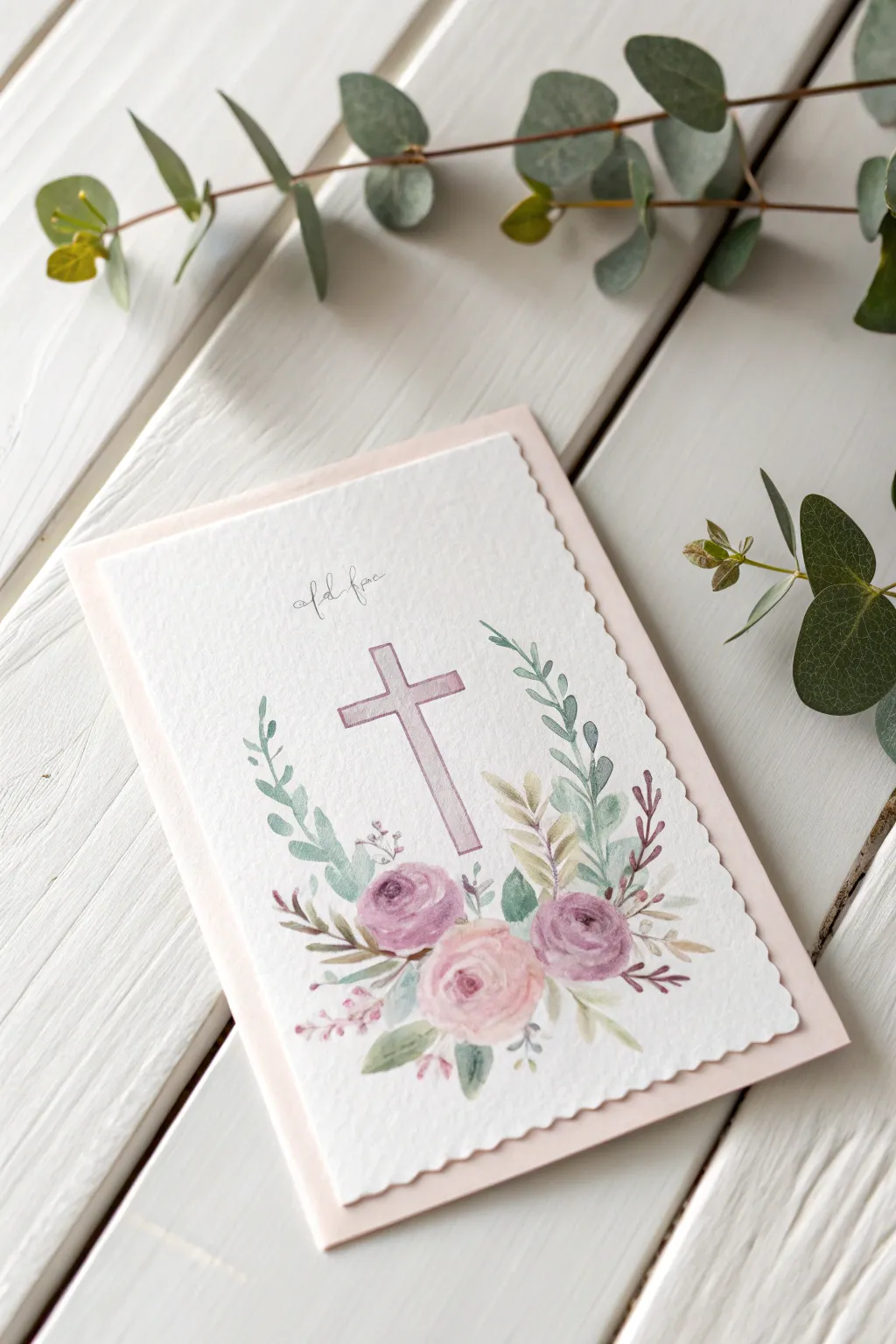 Adding floral accents with watercolor can create a soft, dreamy look. I love using pastel shades to give the card a gentle, welcoming feel.