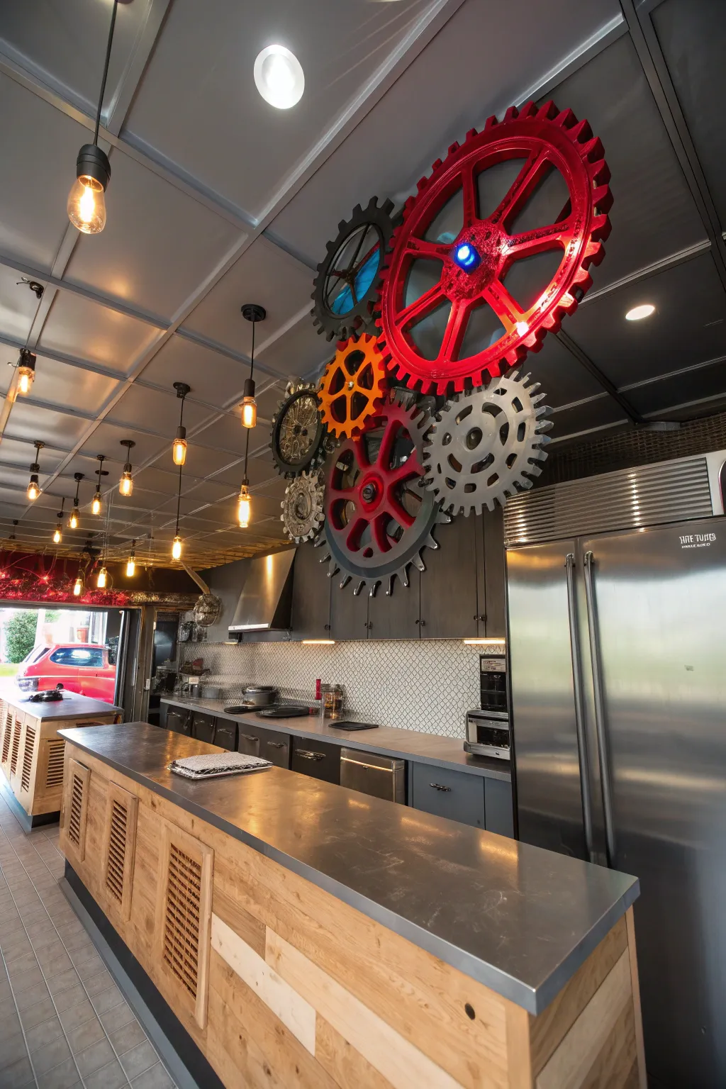 - Industrial Gear Wall Art: Add intrigue with industrial gear wall art, perfect for creating a buzz around your food truck.