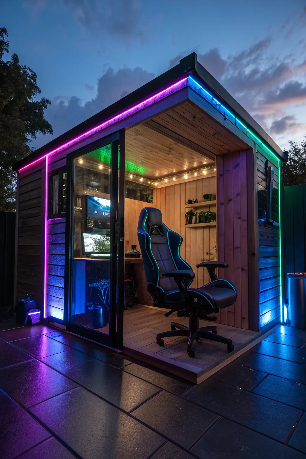 Add some colorful LED lights to make your shed pop with personality. The right lighting can turn any space into a vibrant gaming zone.