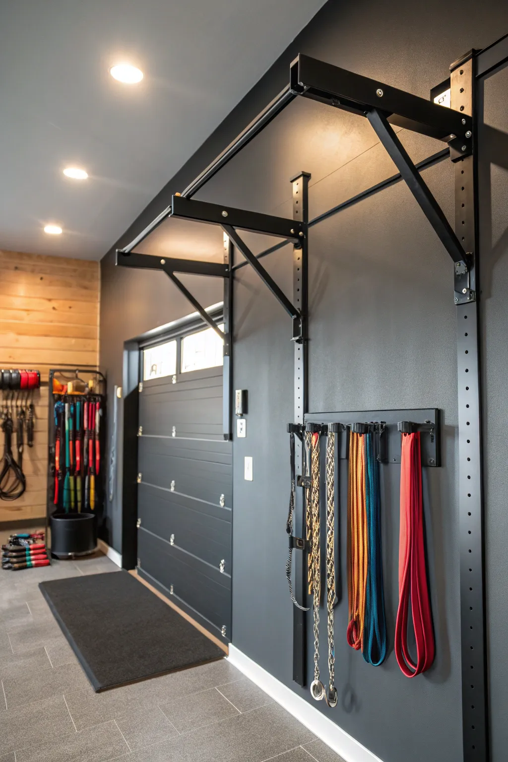 Transform your garage into a gym with sleek wall-mounted equipment that maximizes space and style.