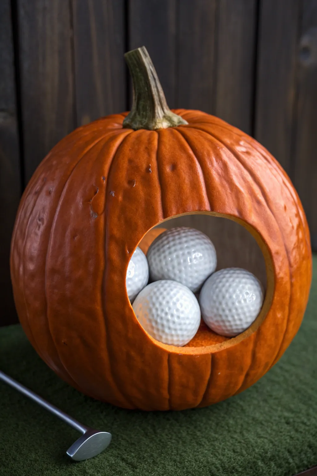 Create a pumpkin caddy by carving out a spot for golf balls on top. It’s a practical way to store those extra balls while showcasing your passion.