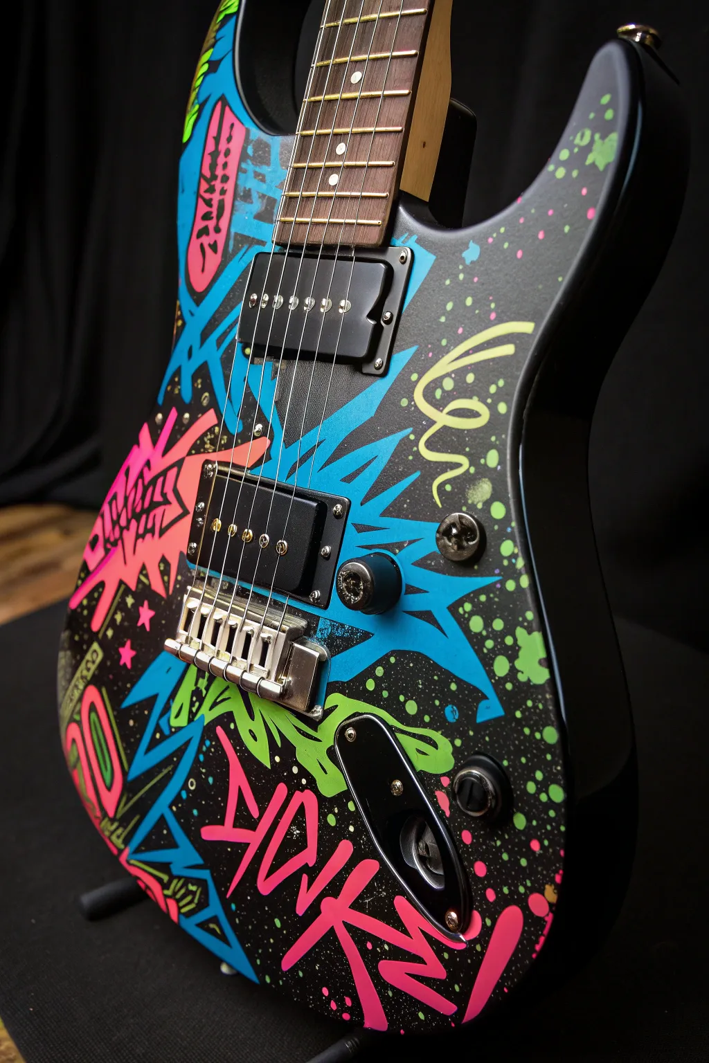 Let the streets inspire you with a graffiti-style guitar. A splash of neon colors and urban designs can turn your guitar into a statement piece.