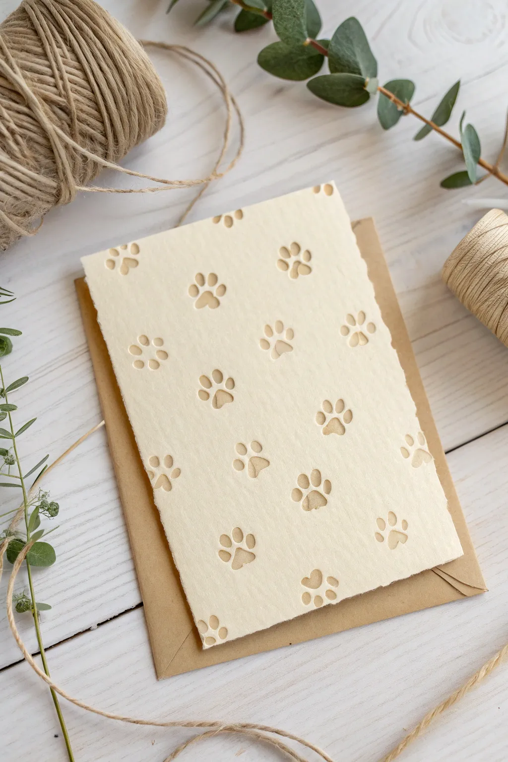 Use an embossing technique to create raised paw prints. It adds a touch of elegance to any card.