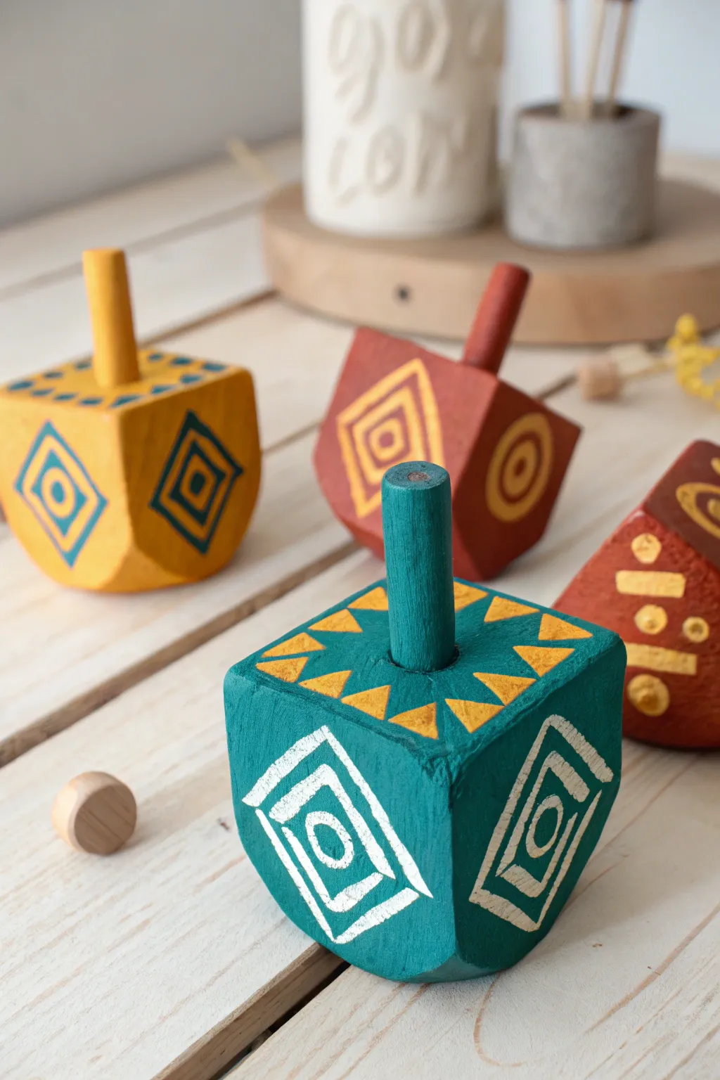 Mix up some salt dough and shape it into cute dreidels. Once baked, paint them in your favorite colors for a fun and interactive decoration that also doubles as a game.
