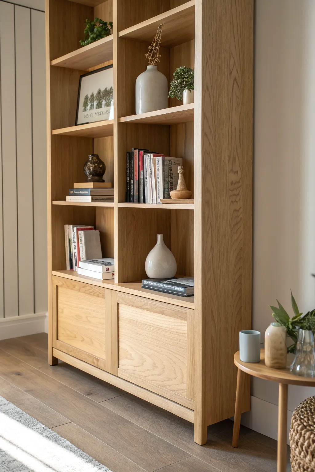Discover the elegance of hidden storage with this minimalist bookshelf's secret compartment. Perfect blend of style and mystery.