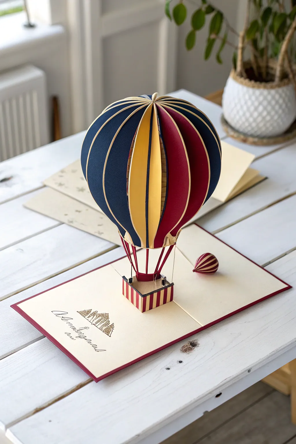 Create 3D hot air balloons using cardstock for a card with a message about soaring love. This design added a touch of whimsy that my dad adored.