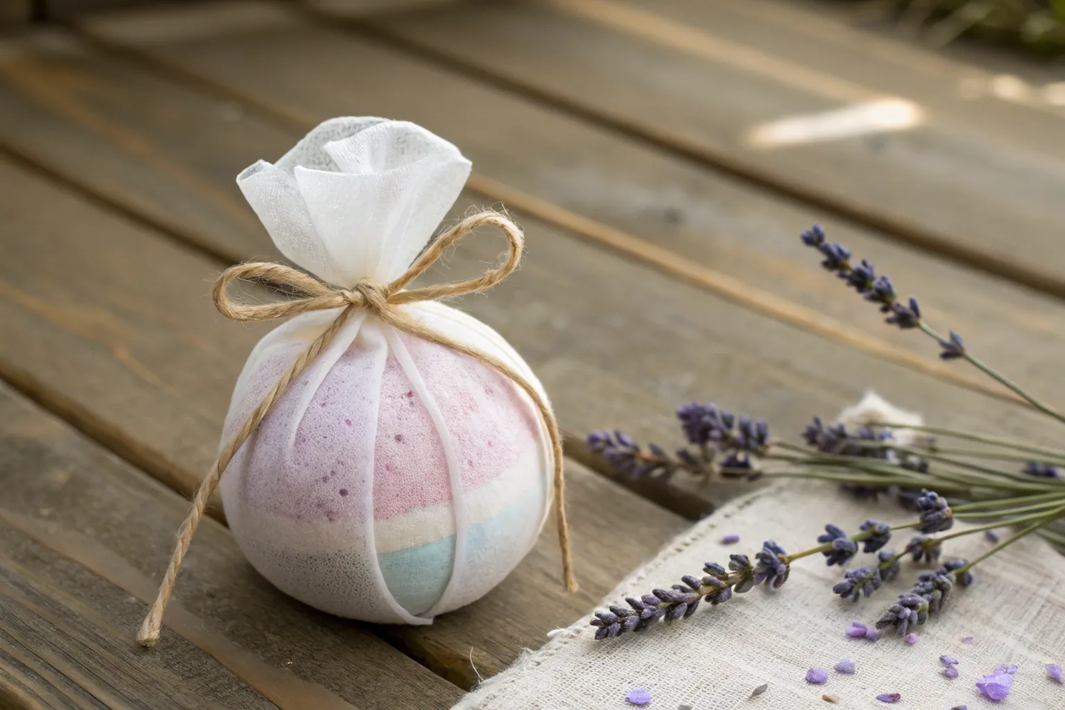 Use small fabric bags to hold individual bath bombs. They’re easy to make or find at craft stores and add a touch of luxury.