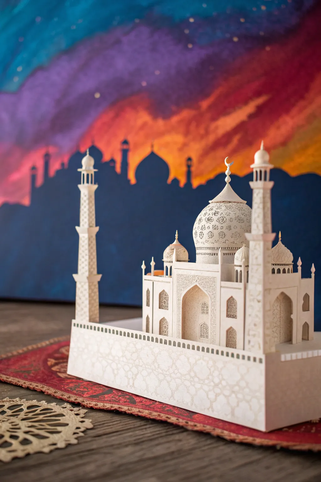 Creating a Taj Mahal silhouette against a watercolor backdrop is a simple yet stunning project. Preschoolers love outlining the iconic shape and watching the colors blend.