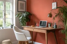 Create an accent wall behind your desk with bold colors or patterns. Mine is a mural that sparks creativity every time I look up.
