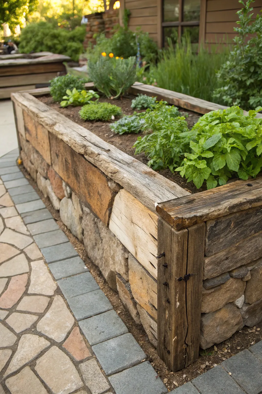 Transform your garden space with a rustic-chic raised bed: a perfect blend of flagstone and wood.