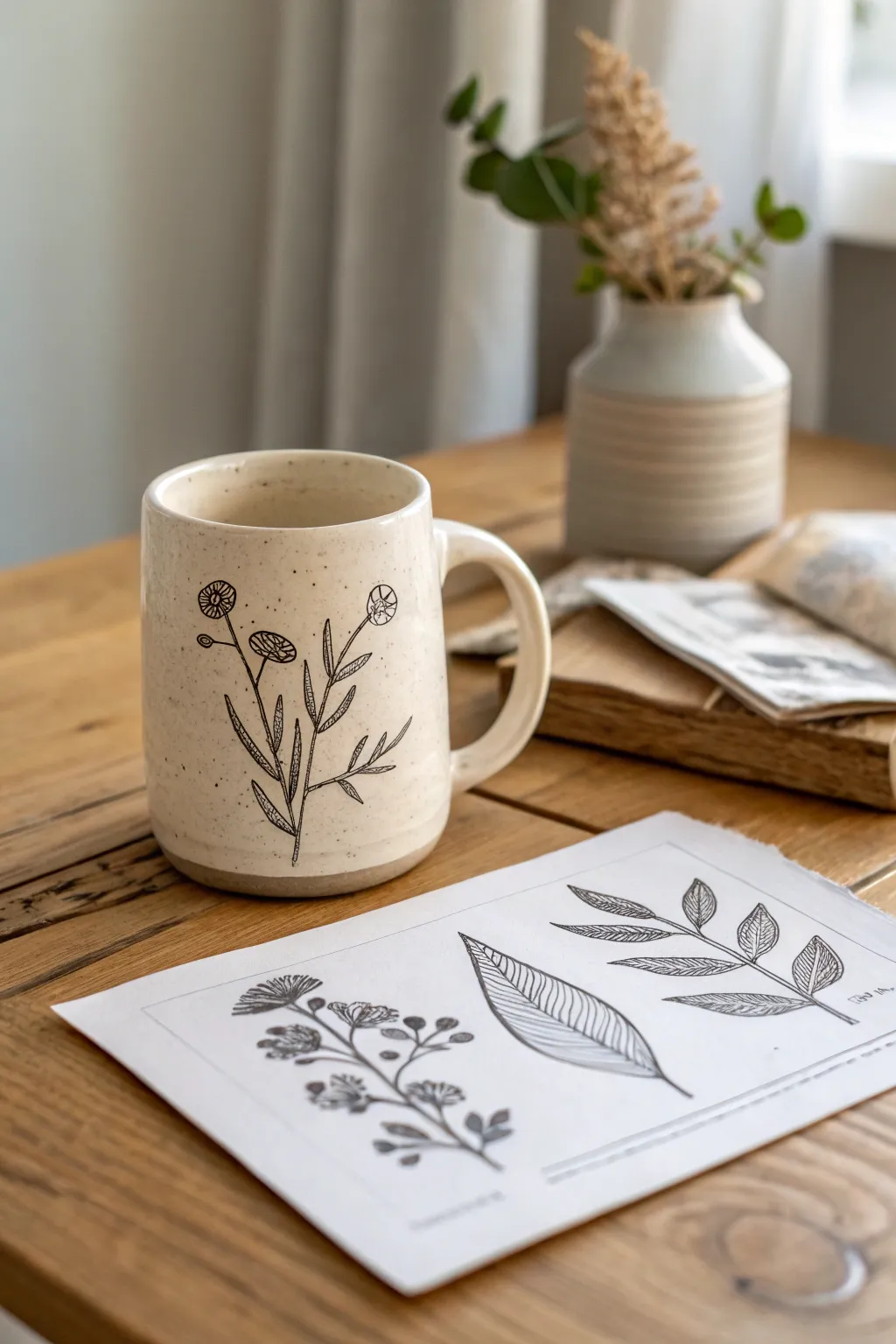 - Ceramic Mug with Botanical Design: Enhance your kitchen decor with a charming ceramic mug featuring elegant botanical prints.