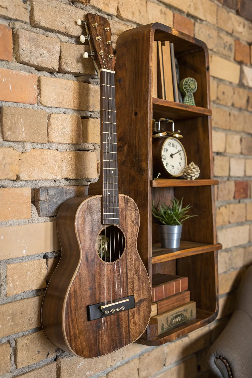 I once turned an old guitar into a shelf, and it was an instant conversation starter. Just remove the strings, add a few small boards, and you’ve got a unique place to showcase your treasures.